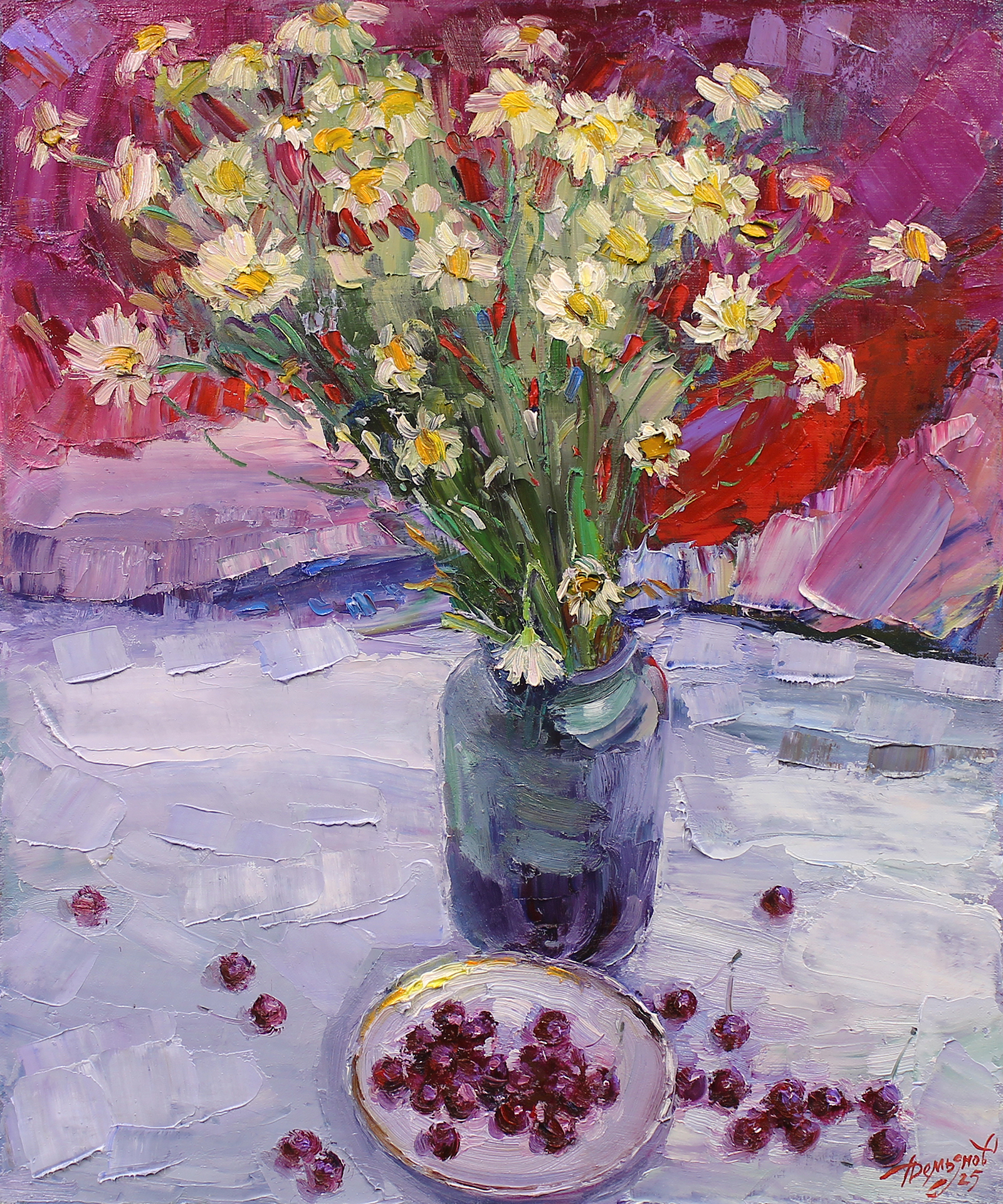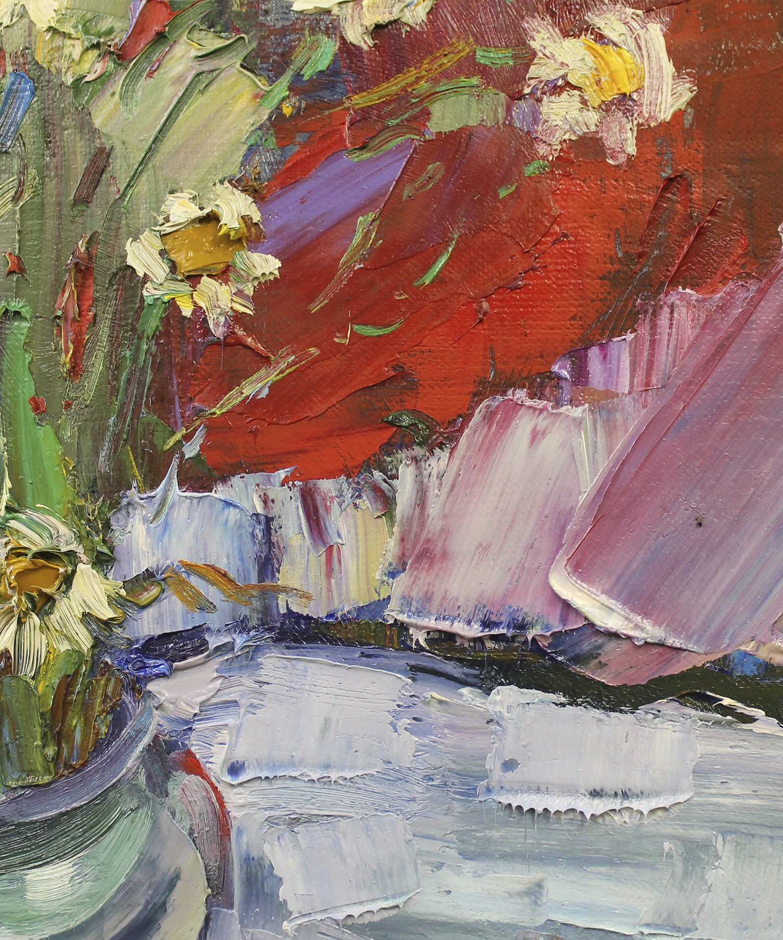 Главная Натюрморты Натюрморты с цветами Ромашки на красном